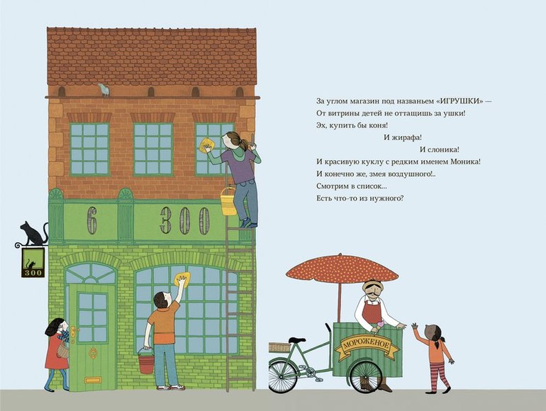 Во время прогулки ребенок будет повторять вместе с Китти стишок, переходя из магазина в магазин. Он будет запоминать новые слова, разглядывать содержимое полок и витрин, фантазировать и придумывать новые детали истории.