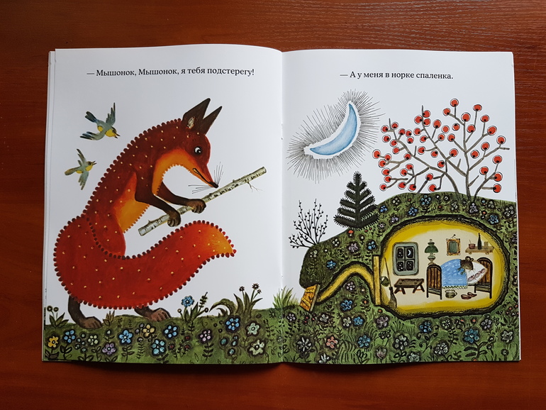 "Изящная миниатюра Виталия Бианки «Лис и Мышонок» дала повод художнику всего лишь на двенадцати страничках разыграть целый одноактный спектакль в шести картинах. Сколько здесь юмора, выдумки, блистательного остроумия! Чего стоит одна находка с двумя месяцами на одной страничке! Дети по самой природе артистичны. Для ребенка во время спектакля не существует рампы. Он сам участник действия. Вот он смотрит на незадачливого Лиса и своей кожей чувствует, как большой, холодный и неуютный месяц светит ему своими колючими лучами. Дальше глаз попадает в норку Мышонка. И маленький читатель уже не Лис, а Мышонок. Сладко спит он в крохотной кроватке, а месяц в окошко глядит - маленький, спокойный. Взрослый этой тонкости художника почти не улавливает, а для ребенка все здесь вполне естественно: два месяца - два раздельных мира. Таких находок у Васнецова тьма. Каждая из них - прежде всего прекрасный повод для разговора с ребенком. И если взрослому в нужный момент удается стряхнуть со своей души груз недоверия и скепсиса по отношению к тоненькой книжке, то и ему самому, как и его юному собеседнику, открываются бесценные сокровища, рассеянные по страницам удивительным художником."