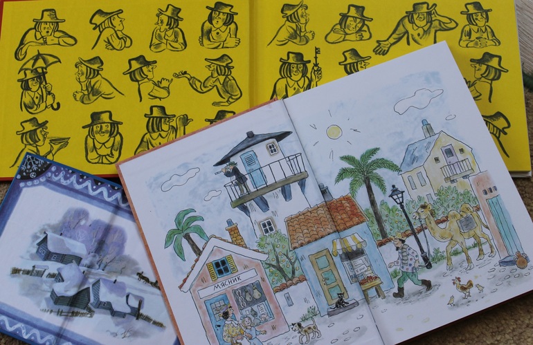 11. А вот эти, пожалуй, мои любимые - "Песенки" Маршака - ил.Монина, и "Люди и разбойники из Кардамона" Т.Эгнер. Последняя восхитительна! очень жаль, что дочка не сфотографировала Нахзац, может быть я добавлю ночью, когда сын уснет, если сама не усну .... если в огороде под малиной не свалюсь))