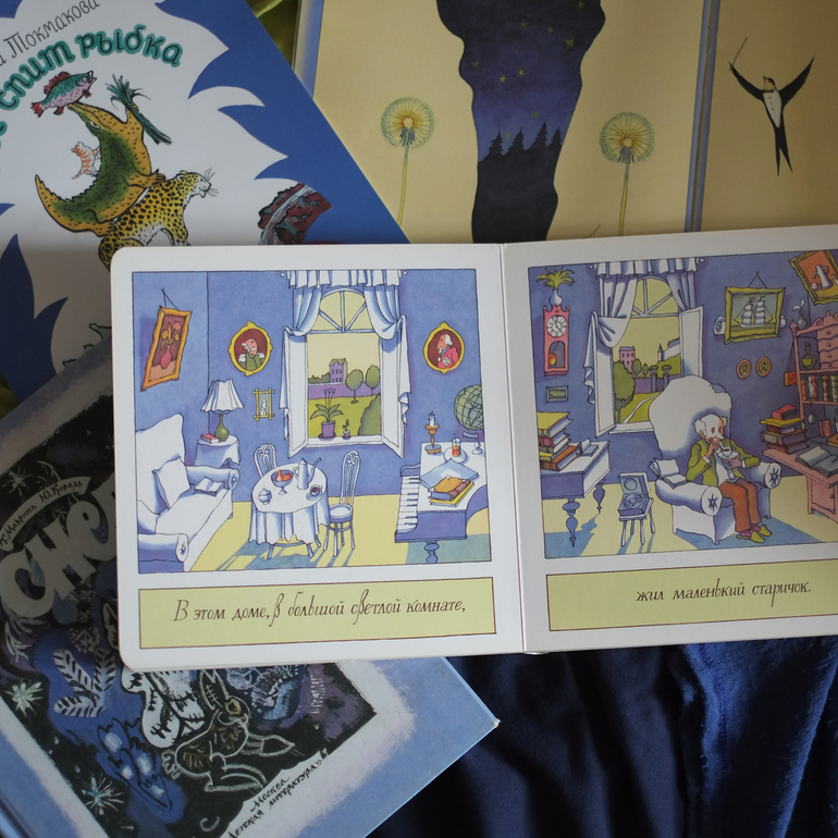 И так мне грустно стало. Одна из самых наших первых книг была, и самых любимых. Книга, встреча с которой меня когда-то окунула в мир детских книжек. За что-то очень ранимое и неуловимое задела. А может, и уловимое, но улавливать не хочется. И синяя, и фиолетовая... А вот на такой желтый мне сейчас больно смотреть почему-то...о