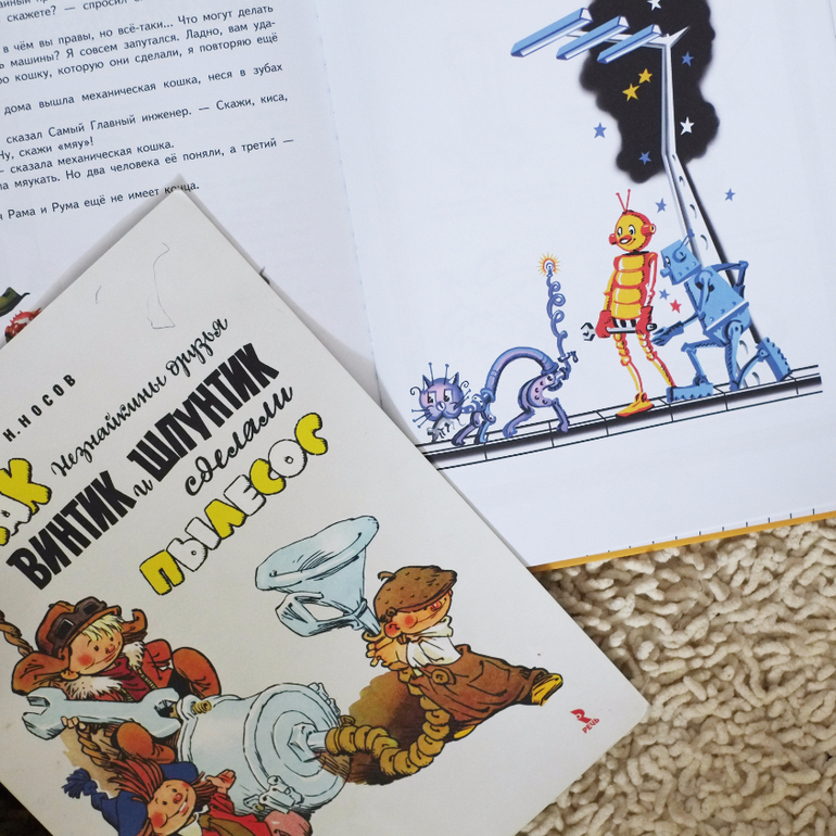 Её читали 100 раз! И прочитали бы ещё 1000, если бы совсем моё мнениё не учитывалось. Я больше не шмогла...:) "Рам и Рум" - уверенно лидирует в ребенкиных предпочтениях последние полгода. Что характерно, первой "крупной формой" когда-то у Вовы стали "Винтик и Шпунтик" со своим пылесосом. Я очень уставала языком) Дифирамбы петь не буду, тег уж больно говорящий. Вообще в многократно читанных у нас всё больше механики и изобретатели: Мулле Мек, отдельные книги Лисьего леса, Петсон с Финдусом...