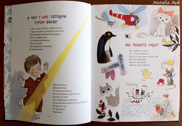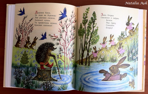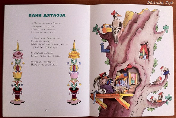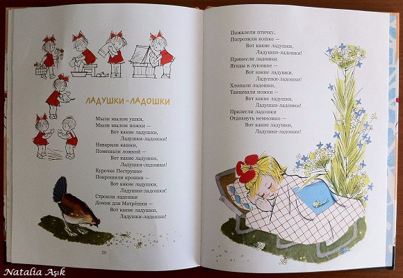Очень хороший сборник стихов от издательства Речь. Такие милые, добрые стихи, и иллюстрации им под стать. Дочка с удовольствием слушает, периодически выбирает "любимые", которые готова слушать по нескольку раз подряд. У нас это "Брысь", про паровозик, "А что у нас сегодня утром было", а еще особенно любимо "про Бабу Ягу", наверное, потому что там часто встречается слово "баба" (по-турецки "папа") :))) Стихи для меня новые, никогда их раньше не слышала, хотя это советская классика. На ББ читала много положительных отзывов об этой книге, и действительно, стихи очень хорошие. Есть для совсем маленьких, например, "Ладушки-ладошки", "Топотушки", под них так удобно играть, а есть и со смыслом, для деток постарше, например, "Наоборот".