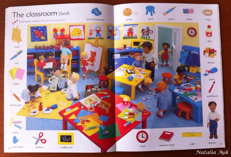 Как иллюстрированный словарь именно для изучения иностранного, на мой взгляд, тоже очень удачный вариант. Очень детальные иллюстрации, понятные даже самым маленьким, рассмотрены все основные темы из ближайшего окружения - семья, дом, части тела, основные глаголы-действия, пикник, парк, на природе, праздник, в садике, плюс бонусом цвета, формы и счет. Все очень доступно и понятно, и в интересной, игровой форме.