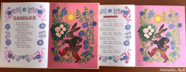 Если выбирать, то даже не знаю, какой лучше, каждый по-своему хорош, но один из них непременный маст-хэв, должен быть у каждого малыша, ведь это классика во всех отношениях, начиная от ритмичного, певучего текста, заканчивая замечательными иллюстрациями Ю.Васнецова. Сборник от Акварели не очень объемный, но с яркими иллюстрациями, качественно напечатан на меловке, содержит самые известные потешки и три сказки - Колобок, Репка и Зайкина избушка. Наверное, идеальный вариант для самых маленьких. А сборник от Азбуки более содержательный, там не только потешки, но и песенки, коротенькие сказочки, но зато нет перечисленных трех сказок. Качество печати тоже очень хорошее, офсет, в отличие от меловки не бликует при электрическом освещении. Обе книжки удобно лежат в руках, можно читать где и когда угодно. Для сравнения несколько разворотов.