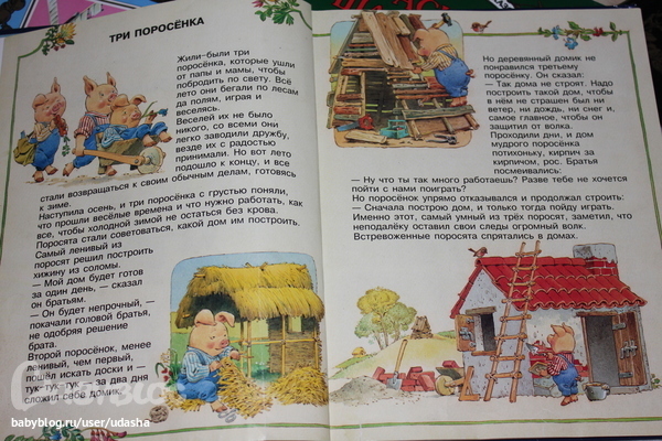 Плотная обложка, гладкие плотные, но не толстые листы. С невероятно-красивыми картинками. Лично мне они не по душе, потому что сказки какие-то урезанные что ли, но для 5 лет как раз самое то!! Читает уже вторую книгу ( три поросенка прочитал, сейчас сказки Перро)