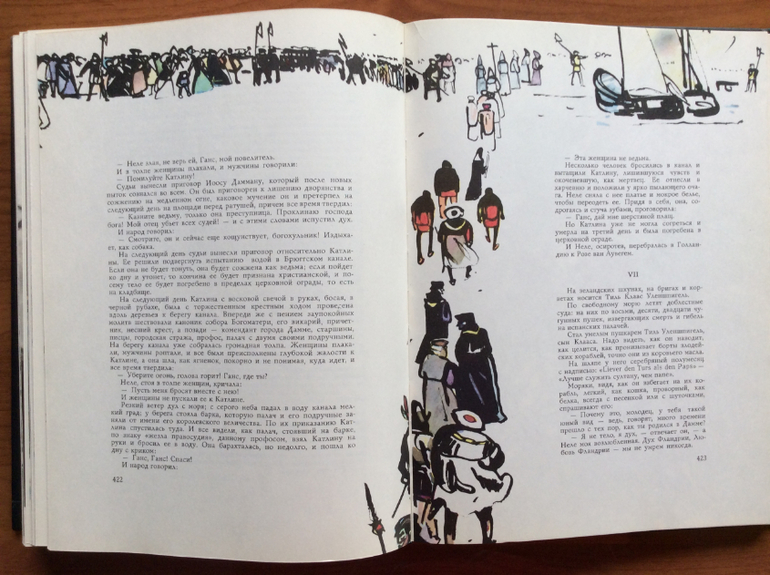 О... Уленшпигель..... Мне было лет 10-12, когда у нас дома появилась эта книга. Очень красивая. Не знаю, откуда вдруг - книги были страшным дефицитом. И я начала её читать... Видимо, это был тот самы полный перевод. Мне стало ТАК плохо и страшно. Я до сих пор помню описанные там пытки. Эта была первая книга, которую я отложила в сторону и никогда больше не возьму в руки.)))