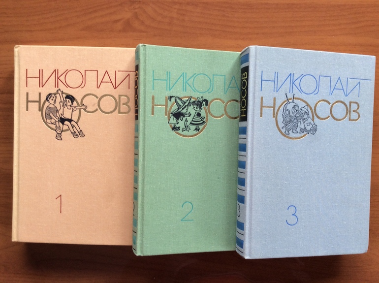 Носов Трёхтомник. На самом деле читает он другие издания - ещё из моего детства. Но этот трёхтомник ему нравится полнотой и незачитанностью. Парадно представляет любимого Носова, так сказать. Больше всего любит "Незнайку в Солнечном городе" ("добрый и про технику всякую и про магию тоже"). :)