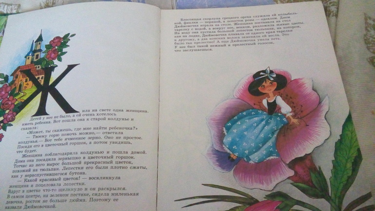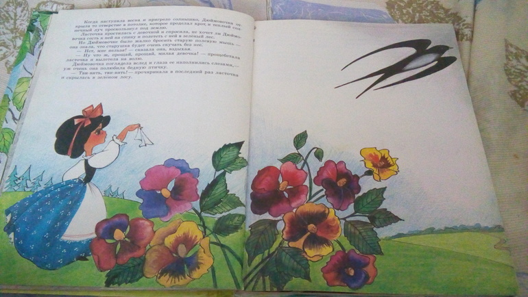 Дюймовочка. Совершенно про нее забыла, хотя очень любила ее читать, так любила, что аж порвалась в переплете!