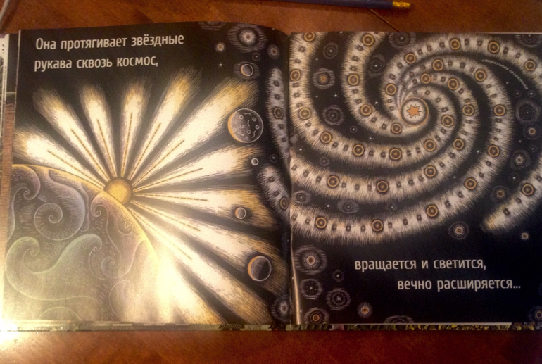 Спирали очень красивая! Мы с дочерью прочитали её в пункте самовывоза, но так как книга была с браком, я решила перезаказать, да так руки и не дошли, а дело было год назад. Так Тася её часто вспоминает, когда видит завитки-спирали в других книгах, когда смотрит на сливающуюся воду. В планах взять её обязательно.