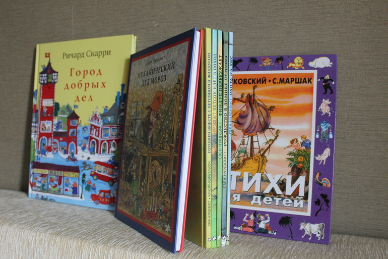 "Город добрых дел" очень нравится, книга была подарена Диминой сестре на 2,5 года, а он её взял в оборот)