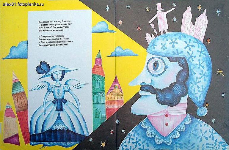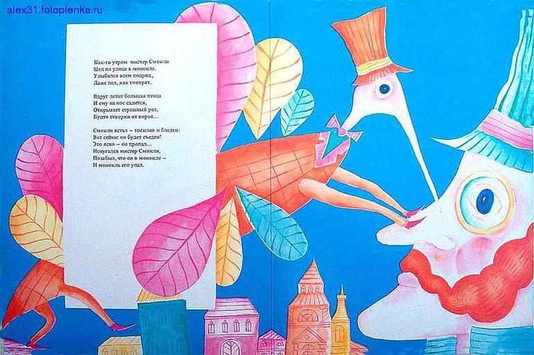В сборнике стихов Дмитриева "Английские джентельмены" читали только Мистера Смокли и монокль (другие не идут, наверное, рано?). В детстве у меня была книга с одним-единственным этим стихотворением с рисунками Дмитриева, я этих картинок очень боялась)) Смотрите сами: