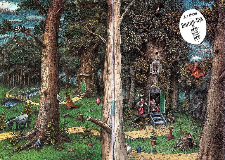 Той же весной попалась мне на глаза статья про гендер сказочных персонажей английской литературы в переводах, http://magazines.russ.ru/voplit/2009/2/eli12.html где говорится, что Сова должна была быть Филином, и становится понятно, почему ребята так старались выжить из леса Кенгу))) Интересная статья, советую.