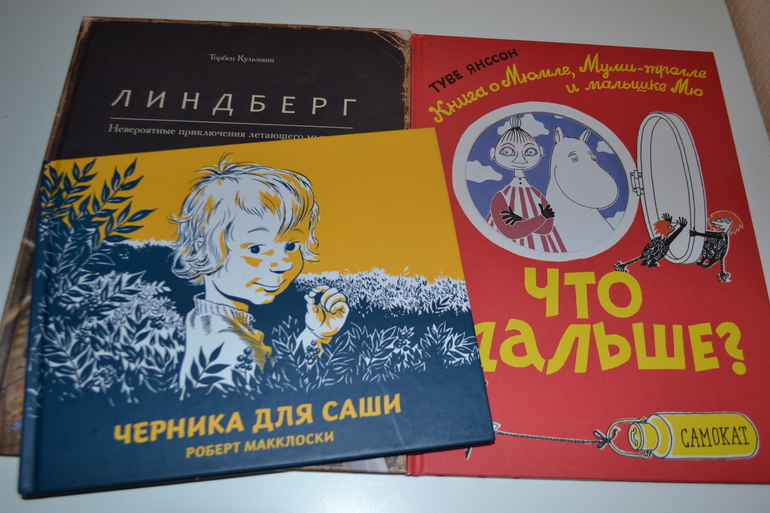 Все три книги яркие и интересны по-своему, особенно сына про Мумиков покорила книжка, там же дырочки, игра незабываемая, сын пытался угадать, что же будет дальше, заглядывая на следующую страницу:)) "Линдберга" слушал внимательно, переживал, "Чернику" я покупала с сомнением, что уже поздно, история простая, но нам очень понравилась, сын листает и пересказывает, даже приехавшей в гости бабушке, которая настороженно относится к "новой" литературе, книга понравилась.