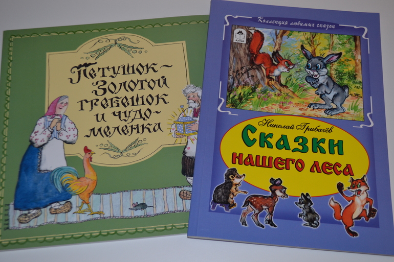 "Петушок-Золотой гребешок и чудо-меленка". Очень сыну понравилась эта сказка, просил перечитывать несколько раз по кругу, веселился: "Носик, носик, пей воду...":)). Сказки Грибачёва как-то незаслуженно обделены вниманием, мне кажется. В этой маленькой книжечке 7 сказок, и сказки интересные, ребёнку нравятся, следит за сюжетом, запомнил героев, про зайца Коську есть и мультфильм, и диафильмы.