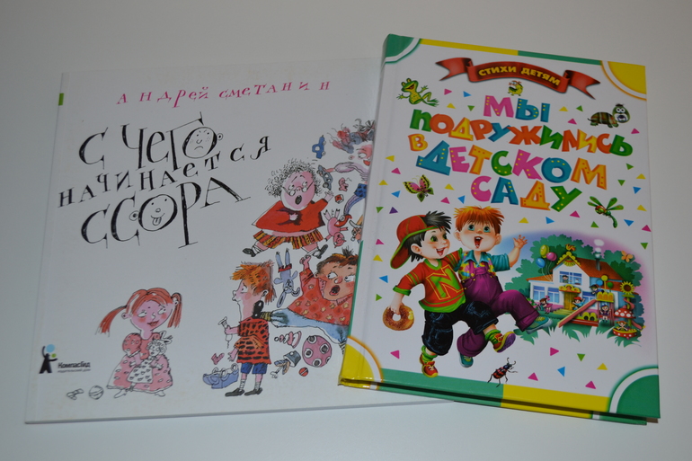 Шутливые стихотворения про детский садик Сметанина и Синявского прочитали в дороге, сын хихикал, не могу сказать, что всё в книгах прекрасно (иллюстрации жуткие:))), но какие есть:)