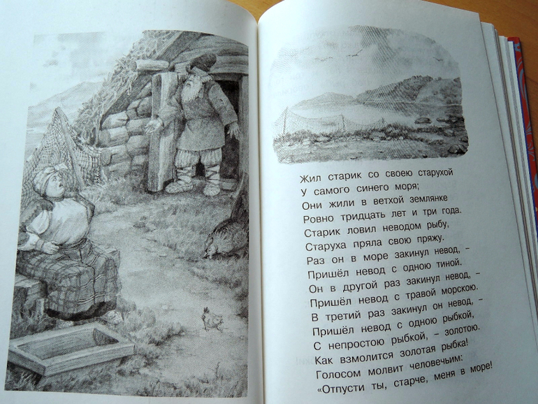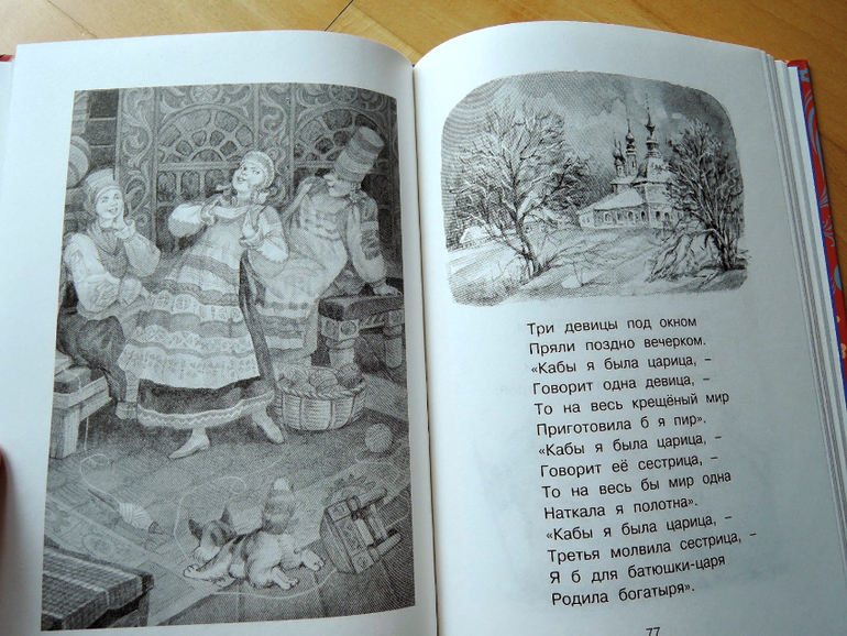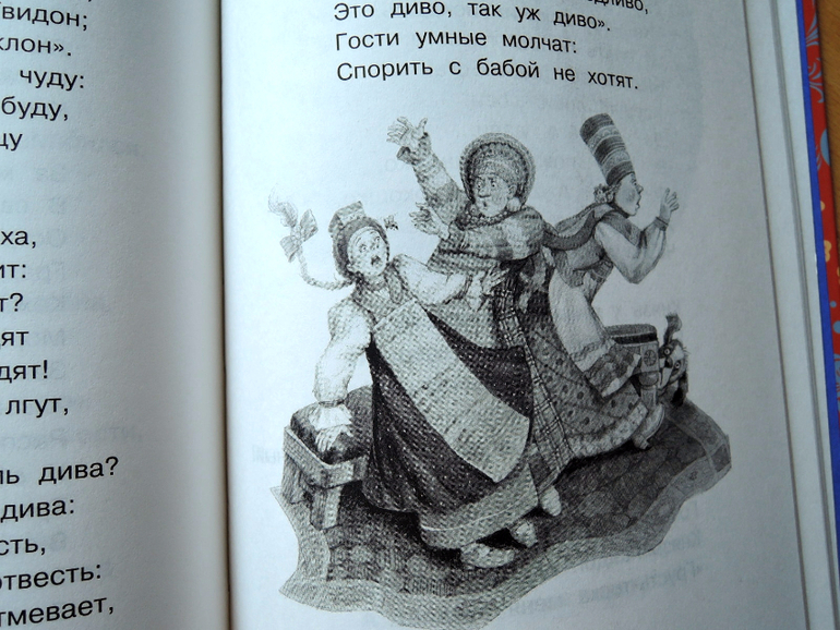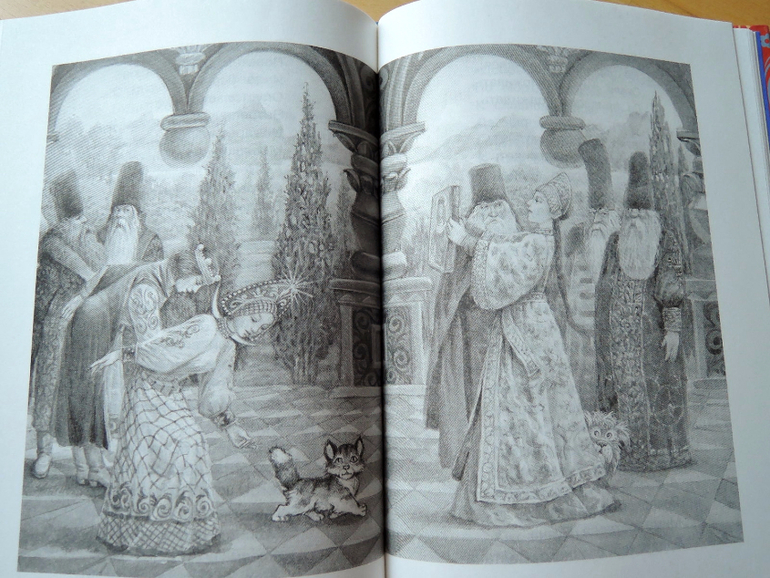 Пушкин великий русский блабла... я знаю. Стихи мне его нравятся. Сказки не очень. Если ребенок будет в восторге - закажу какую-то красивую полноценную версию. Это больше мне, освежить в памяти о чем он там писал. Кроме того, я люблю книжки именно на такой бумаге с ч/б иллюстрациями, мы все со своими причудами)))