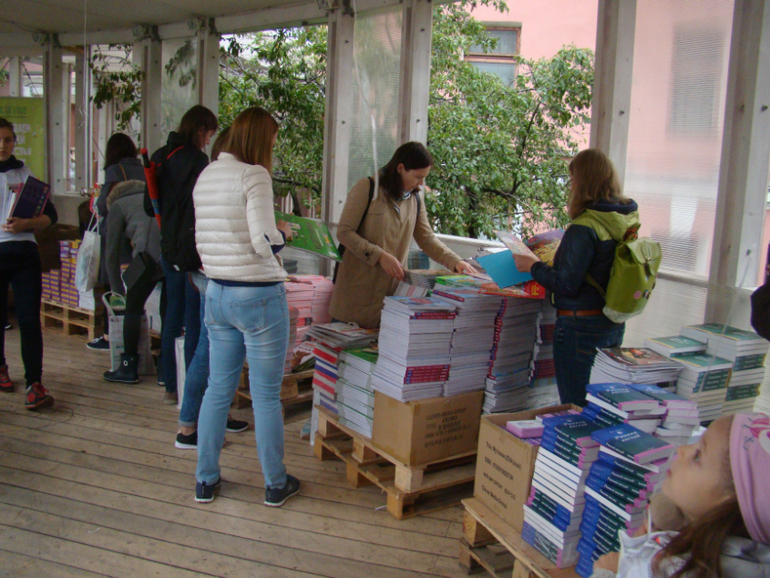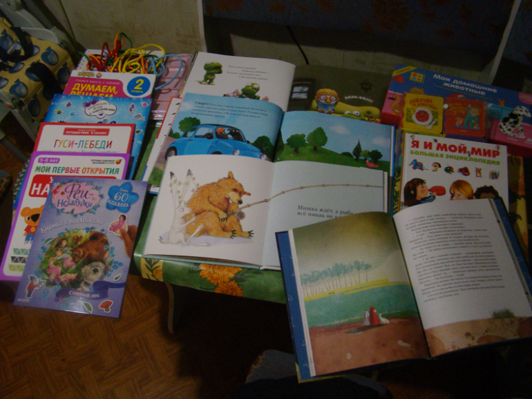 Неплохо, конечно,хотя к середине дня организаторы поняли что набирать полные сумки наши люди умеют и быстренько изменили условия! А именно, набрать можно столько книг чтоб они не торчали из сумки,т.е. в один ряд, а с утра кто успел,те несли до ручек наполненные сумки) Вот наш улов, мы были уже после обеда) И все равно очень неплохо) Я выбрала 18 книг, влезли со скрипом и треском в маленькую сумку за 1,5т. а книг оказалось, после подсчета дома) на 7500!! Книги хорошего качества, дети были оооочень рады, шнуровкам особо.