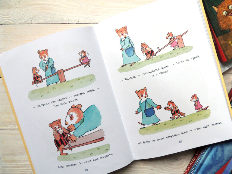 Вместе с Бобо вы отправитесь в зоопарк, сходите в магазин, погуляете на детской площадке, поплаваете в бассейне, заболеете и выздоровеете и отпразднуете его двухлетие.