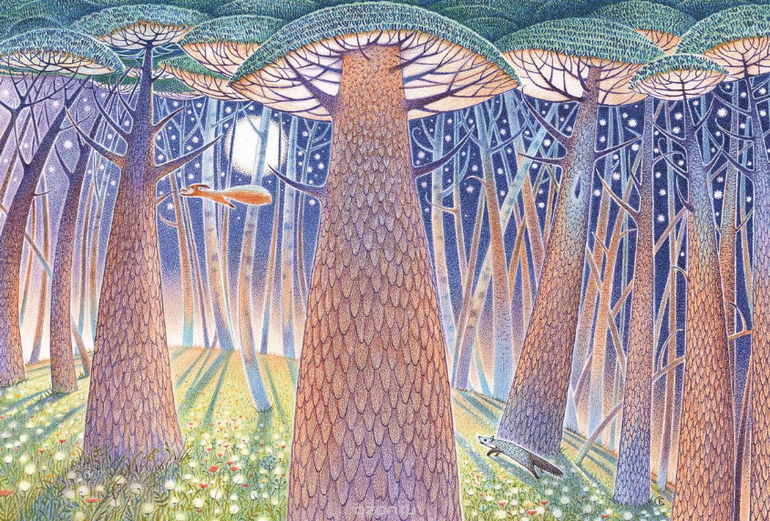 Сказочный лес и огненно-рыжего бельчонка изобразила в своих ярких иллюстрациях Светлана Бушманова.