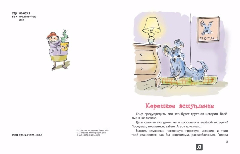"Давайте познакомимся! Я - Мотя из семьи Дырочкиных, скайтерьер. Именно я буду рассказывать вам эту историю. А началась она с того, что я съела чужую перчатку. Вы, наверное, знаете, что брать чужое неприлично? А ещё неприличнее чужое есть!