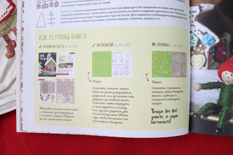 Для ленивой мамы можно вообще обойтись одной книгой, там есть и домики по каждому на 15 дней до НГ, и герои, которых можно просто вырезать, они будут присылать поручения, и письма, даже задания можно просто вырезать из тетради.