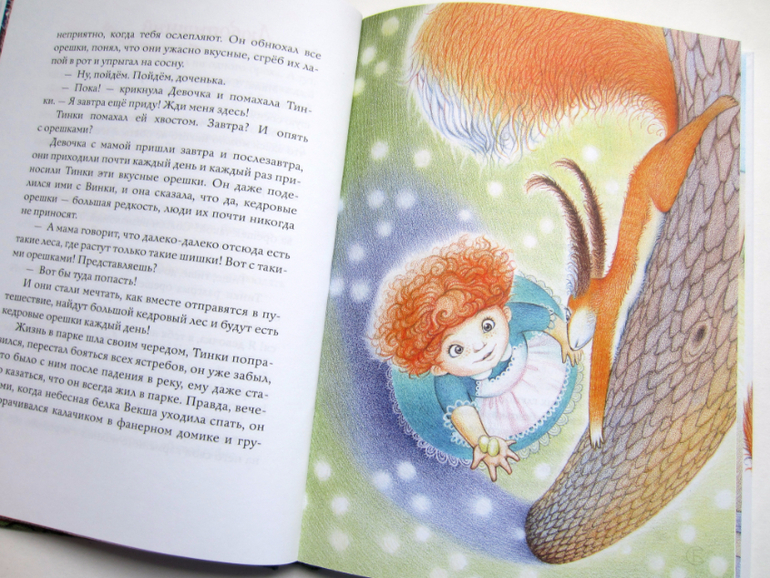 Содержание вызвало улыбку) Да-да,именно такой этот Тинки! Всё время меняющийся, всё время разный! Много испытаний предстоит пройти бельчонку, во многом разобраться: понять, как важно было слушаться маму; сравнить жизнь белок в лесу и в городском парке, побывать у людей. И всё это для того, чтобы вновь встретиться с теми, кто ему дорог!