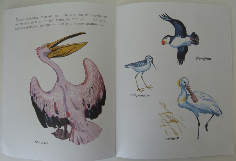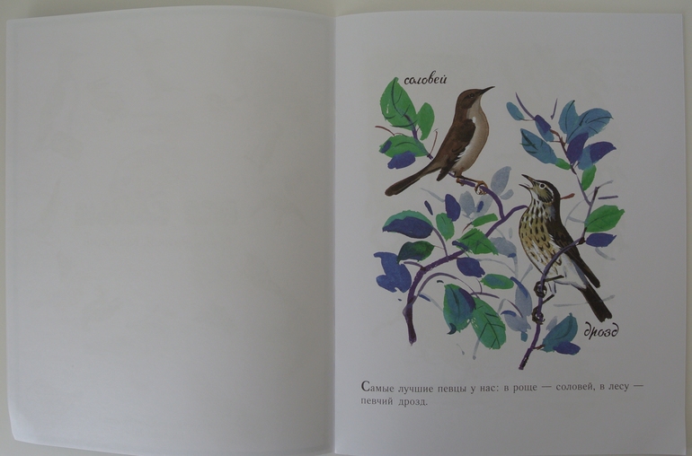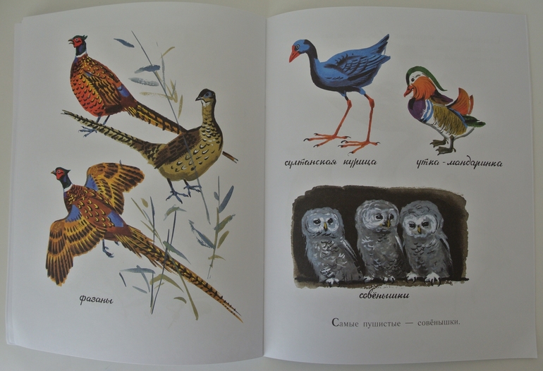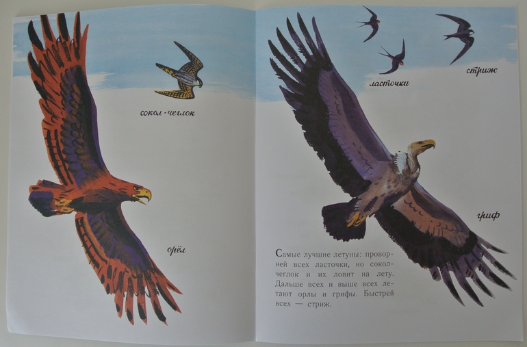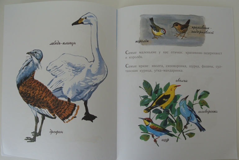 Манухин в нашу копилочку:)Реалистичные изображения очень удачно вплелись в описание птиц Виталия Бианки. А птицы не простые, а самые-самые: самые лучшие бегуны, самые лучшие ныряльщики, самые лучшие строители... Удачной еще считаю эту книгу, потому что на вопрос сына: "какая птица в нашем лесу лучше всех поет", можно легко и непринужденно ответить и показать. И не нужно о соловье рассказывать, т.к. у сына заготовлено еще 10 вопросов, которые как в блиц-опросе, задает со скоростью света. Какая птица самая смешная? Кто быстрей всех летает, а кто выше всех.