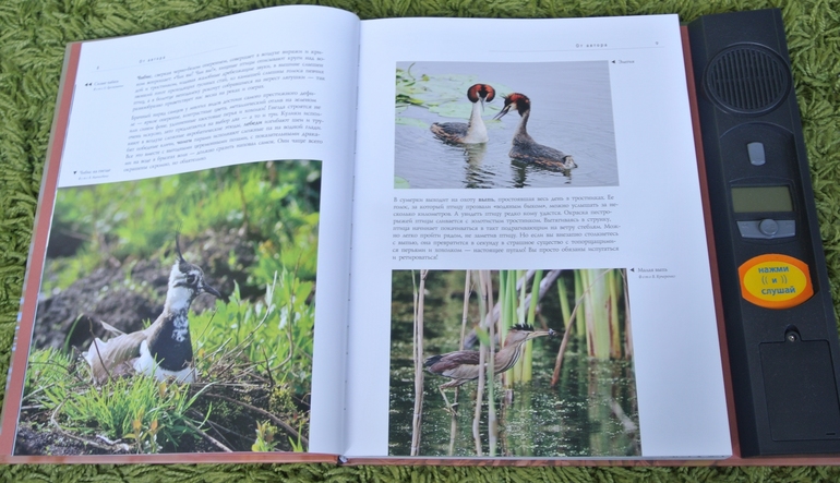 Сначала поселились "Певчие птицы". Книга, которую давно хотелось видеть на нашей полке, но все откладывала из-за жаба душила и так большого списка книг первой необходимости:))). И чем ближе приближалась весна, а за ней и первые ощущения лета, тем чаще не покидали меня мысли: "Скоро уже уедем на лето в деревню. Можно "посравнивать" там голоса птиц...". Да и вообще подобное издание всегда пригодится в подготовке уроков по Окружающему миру:). Звуковой модуль, превосходные фотографии и понятное описание для обычного обывателя - все радует.