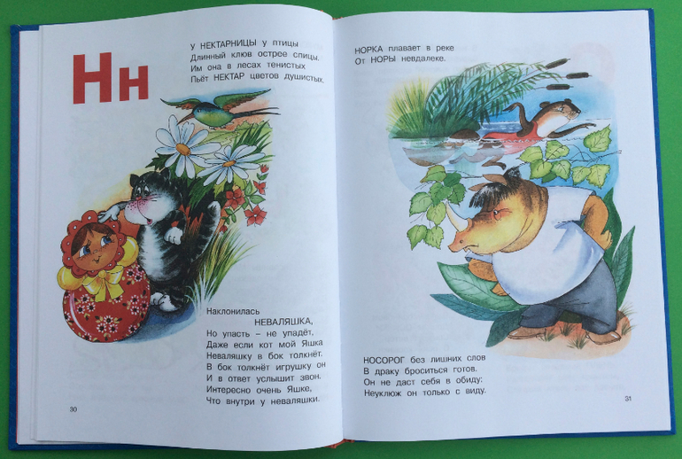 Вернемся к этой "Азбуке" - бралась у подруги, для разнообразия. Сама подруга от нее не в восторге - дочка категорически отказывается ее читать, захлопывает и все. Мы дослушали до буквы "Н" (на фото), дальше стихи становились все расплывчатее, язык мамин заплетался все сильнее, а дочка почти не слушала. Феноменальный провал.