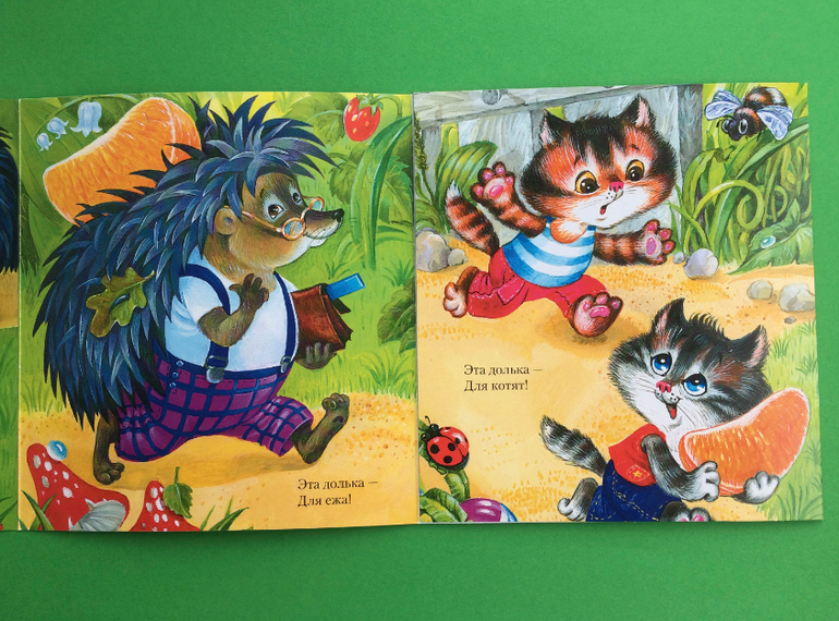 "Мы делили апельсин" - ВОТ ЧТО В НЕЙ ТАКОГО? Прилизанные иллюстрации, не люблю раскладушки (хотя дома есть пара, для знакомства с форматом), но ребенок просто прыгал и скакал с нею, жалко, что не наша - теперь жду в лабиринте или майшопе. Нам - надо. Собственно, о мультике только по этой книжке и вспомнили - это была просто феерия, восторг ребенка бил фонтаном, выучила стишок мгновенно и... в общем, плачу горючими слезами - переиздайте, пожалуйста!