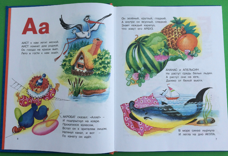 "Веселая азбука" - старая, теплая и настоящая, из детства. По ней же и брата учила читать. Есть 2 сохранившихся формата: А5 и А3. Честно говоря, зачем мама (моя) покупала А3 не совсем понятно - слишком большая и хранить неудобно.