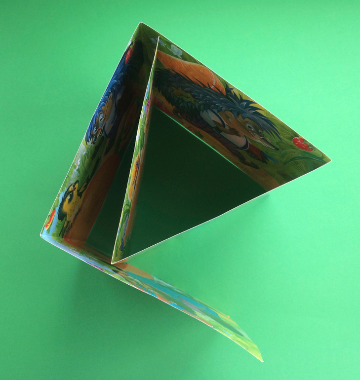 "За покупками" - о, эти повторы, добавления и накрутки слов. Очень похоже на "Дом, который построил Джек" и "Кто разбудил детку", только здесь стихотворение не увеличивается, а уменьшается. Очень интересный момент - половина страниц больше по формату - сложены внутри книги, получается, что читаем стихотворение и видим перед собой магазин и сразу же можем открыть двери и посмотреть, что в нем продается. Книжка - бешеный хит.