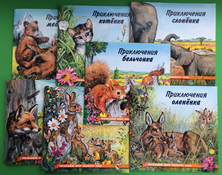 Эти книжки брали у друзей. Очаровательные иллюстрации - они завораживают, незатейливые истории. Повествование ведется от рождения зверьков и до завершения их этапа взросления - у них появляются свои малыши. Фактически, круговорот животных в природе) Формат такой, что удобно носить с собой - кинуть в сумку и вспомнить, когда надо. Дочка с большим удовольствием разглядывала иллюстрации, а вот сами истории не настолько заинтересовали, чтобы просить перечитать, хотя внимательно слушала до конца. Лично мне они очень напомнили связную историю из фактов энциклопедии (и это замечательно!). По окончанию повествования я не услышала ни одного вопроса по историям, что весьма странно.