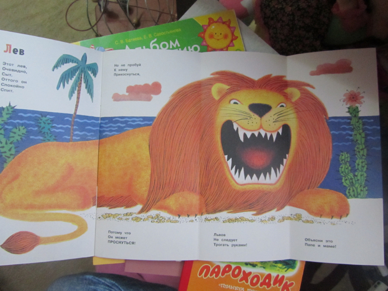 ) и сам уже выбирает их к прочтению. Эта книга гармонично вошла в наше ежедневное чтение. Всё замечательно в этой книге - и сама задумка, и рисунки , и стихи! Особенно любимы у сына лев и бегемот )) Очень рекомендую деткам до 3 лет.