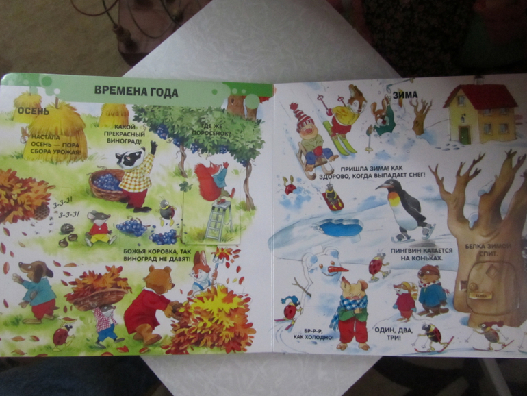 С этой книгой такая история вышла. Хотела я её подарить на двухлетие сына, заказала вместе с игрой, но потом передумала ( решила, что проживём и без неё). Игру нам должна была подарить бабушка,я написала ей номер заказа, а про книгу предупредить забыла, и она выкупила весь заказ. И вот книга всё-таки появилась у нас дома )). О чём я кстати не жалею ( тем более это оказался подарок от бабушки;)). Мне вообще очень импонируют зверушки Тони Вульфа, я уже покупала одну книгу с его иллюстрациями «Стихи для малышей», но она у нас не полюбилась и я её подарила другому ребёнку. А этот толстенький толмут на удивление очень приглянулся сыночку. Окошек в книге действительно очень много, но некоторые уж чересчур мелкие. Понятий к изучению тоже предостаточно - счёт, цвета, формы, противоположности, манера поведения, времена года, дни недели. В общем книга многофункциональная и долгоиграющая, а мультяшные зверушки Вульфа - загляденье!))