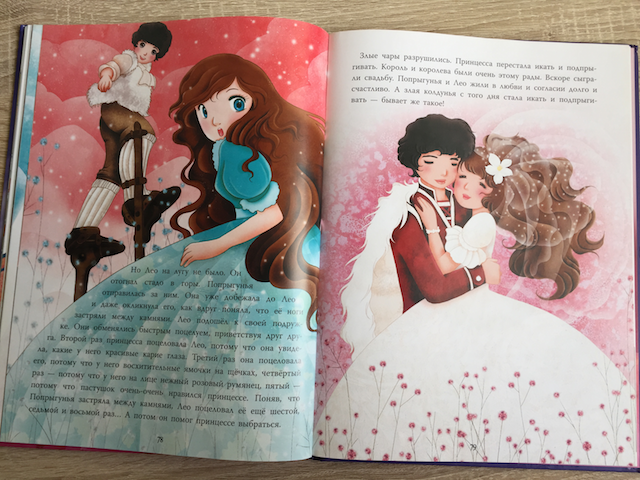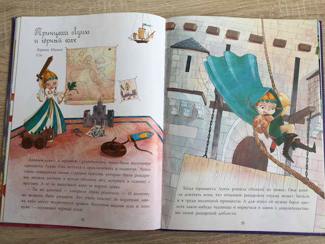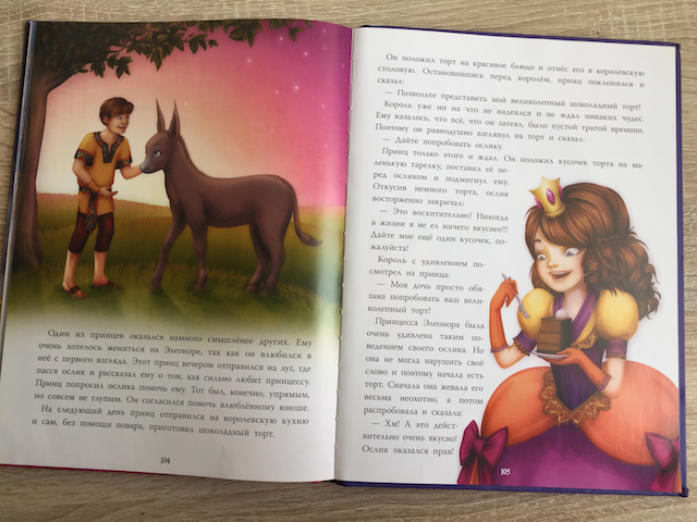 Несмотря на все недостатки, я считаю покупку удачной. Потому что каких только принцесс тут нет: и девочки-принцессы, и принцессы-эльфы, и добрые, и жадные, и принцессы-грязнули, и принцессы-рыцари. Принцев тоже предостаточно. И драконы есть, и ведьмы. И все это как раз на возраст 3-4 года: простенько и нестрашно.