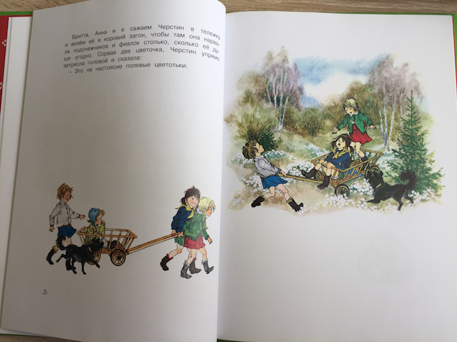 А следующая книжка - моя радость. Какое же удовольствие ее читать! Это такое настоящее детство! Эта наивная вера, что "у нас в Бюллербю", конечно, все самое веселое и самое лучшее. Эти игры из ничего и умение радоваться каждому мгновению. Так и хочется снова стать маленькой, побежать собирать "полевые цветотьки", месить лужи резиновыми сапогами и пить сок с плюшками из игрушечной посуды. А Рождество? Настоящее просто не бывает, разве может быть оно более детским, более праздничным, чем здесь?
