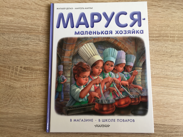 Еще один безусловный хит - "Маруся - маленькая хозяйка". Я уже рассказывала о нашей любви к книжкам про Мартину-Марусю. Долго мы читали несколько распечатанных рассказов еще со старым переводом, с оригинальными именами. Потом я решилась купить сборник "Новые приключения Маруси" с новым переводом. А потом нам и эту небольшую книжку подарили и подарок пришелся доче очень по душе (Валя, спасибо!)