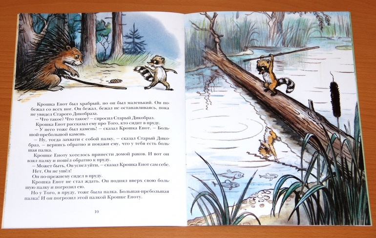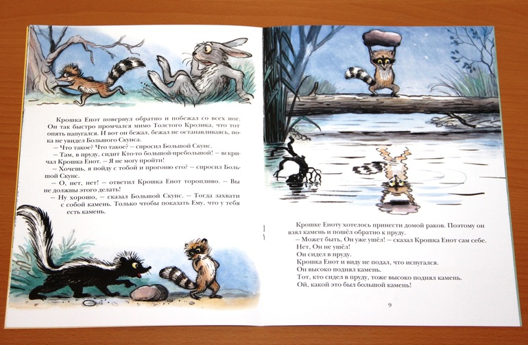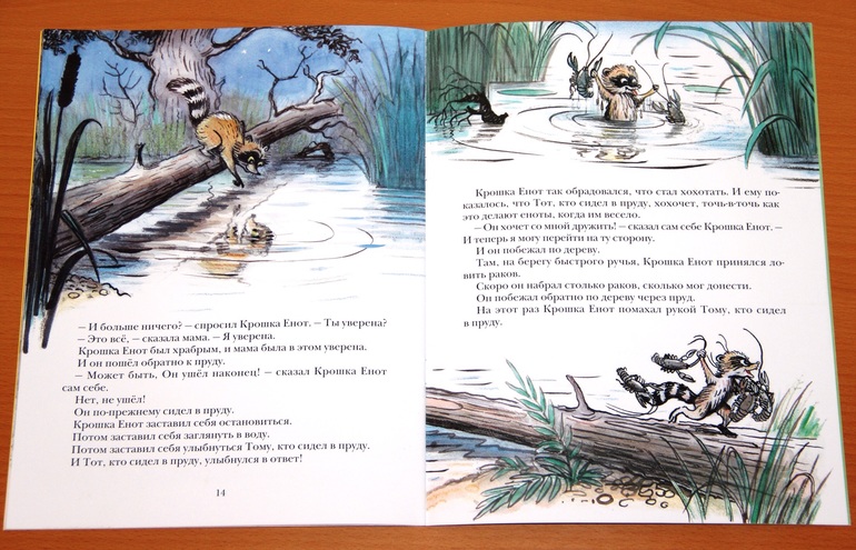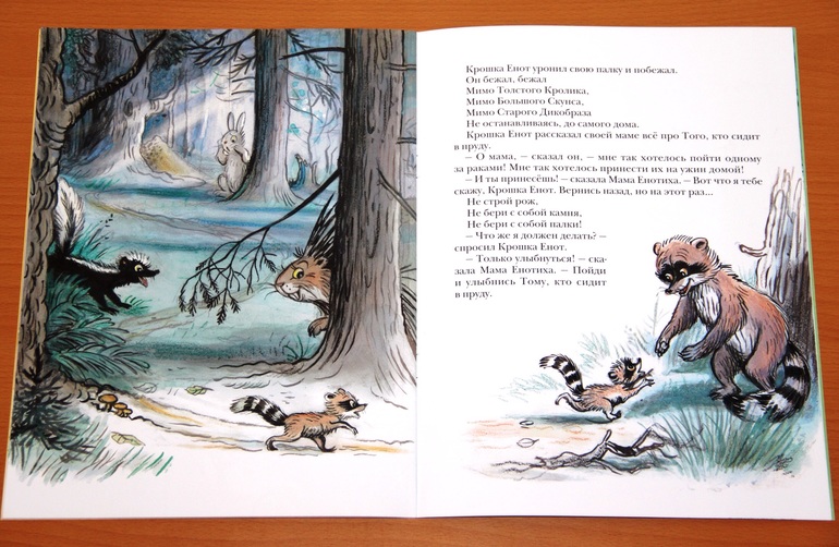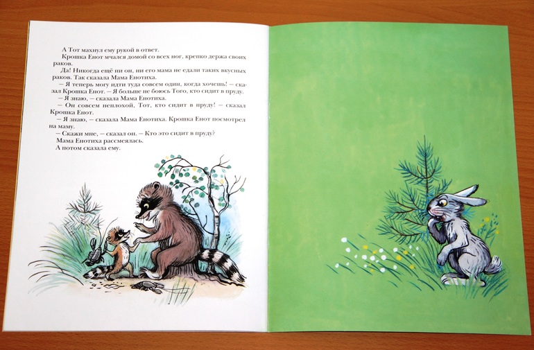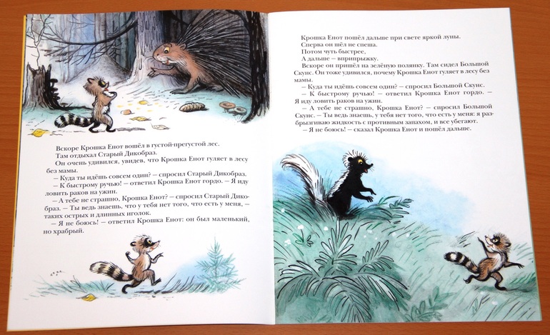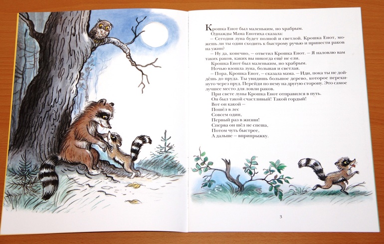 Я не решалась на покупку так как считала, что эта книга слишком простенькая и мы ее уже переросли по возрасту. Но однажды я всё же решила, что пора ее заказать и посмотреть какая она на самом деле. После получения своего заказа я просто влюбилась в Крошку Енота ! Рассказ оказался очень поучительным, а сам Крошка Енот необыкновенным милашкой !