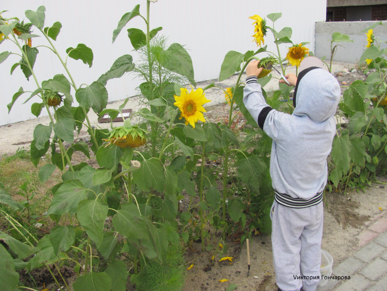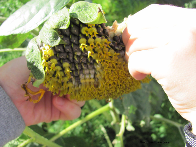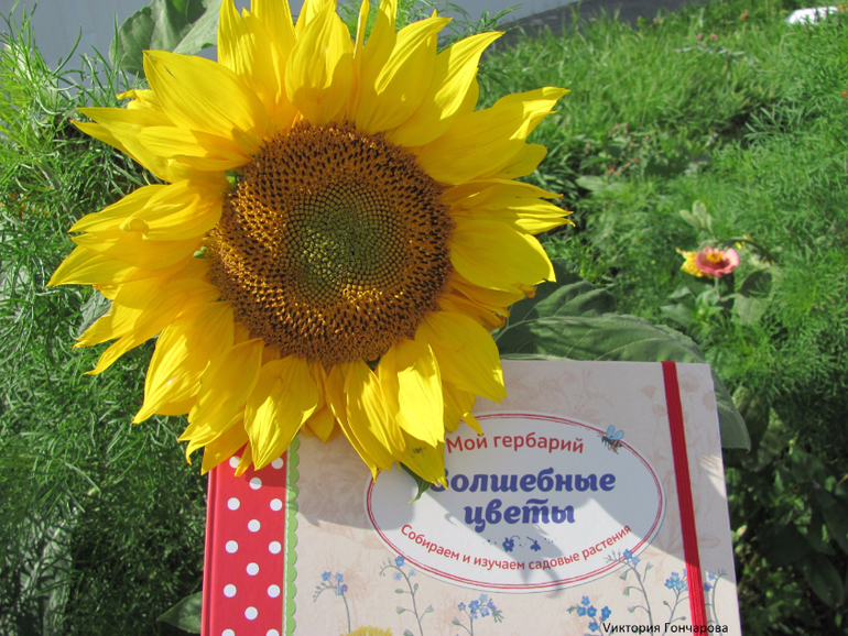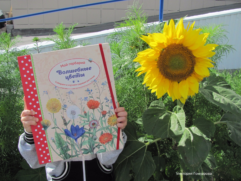 Вооружившись необходимым арсеналом мы вышли на поиски нужных растений с книгой под мышкой. Но, первый попался подсолнух, жаль в книге его нет))