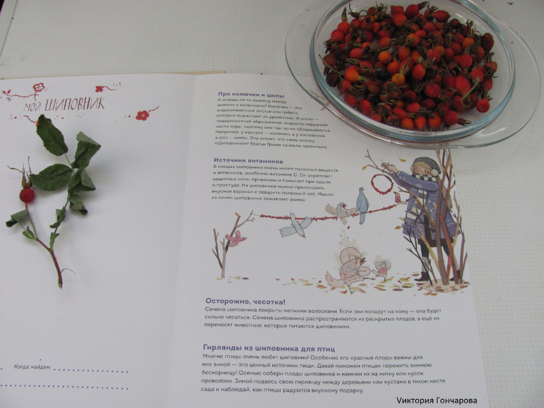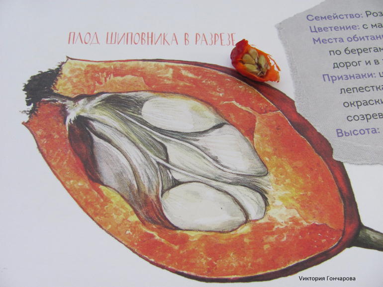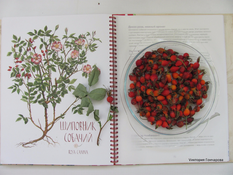 Не забыли сравнить натуральный плод шиповника с иллюстрацией из книги.