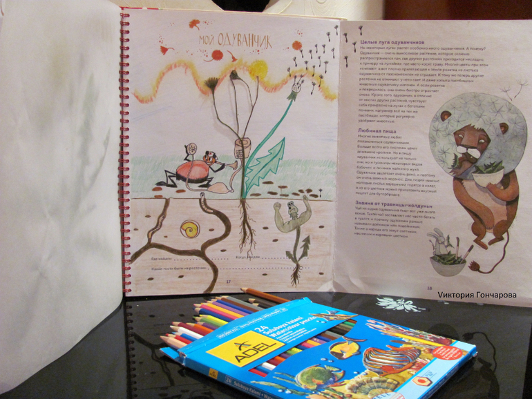 Детали - когда-то любимый Кротик под землей, обязательно прорисовка корней, хамелеон, цветочки....