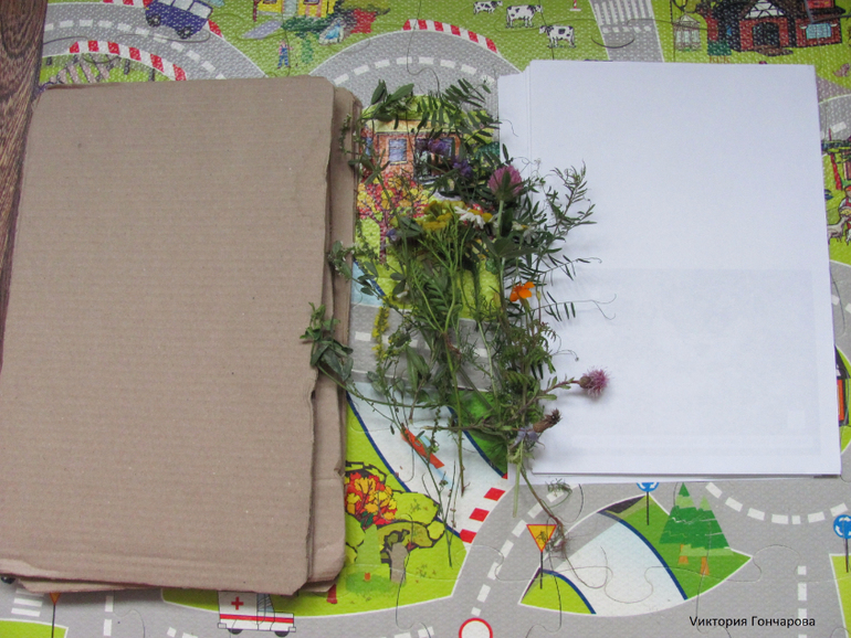 А позже когда наши растения подсохли, мы начали оформлять гербарий.