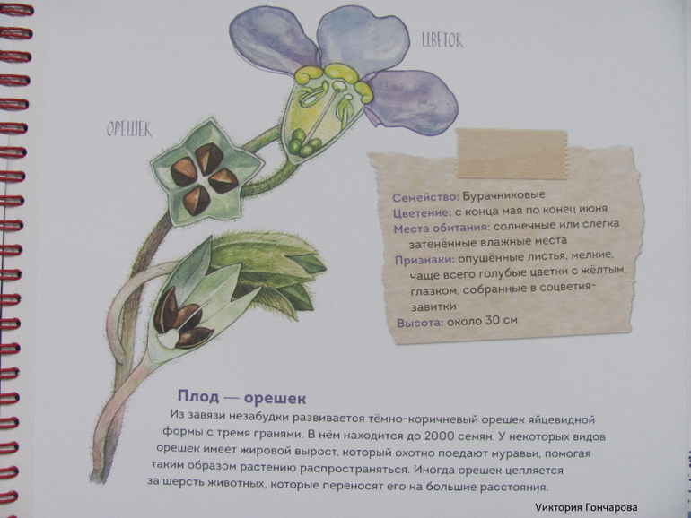 4. Каждое растение показано в разрезе + плод. Имеется краткая информация - семейство, цветение, места обитания, признаки.