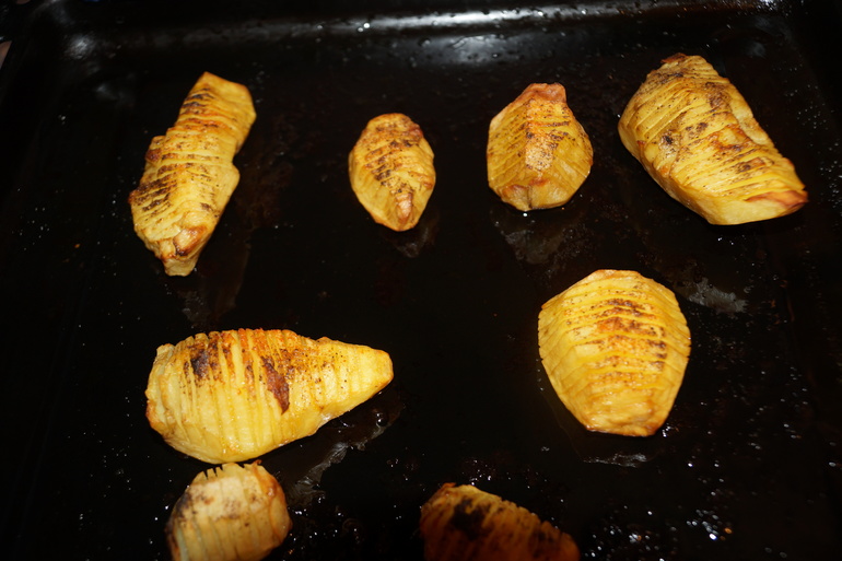 P.S. Мой первый в жизни запеченый картофель выглядел точно так же - не до конца прорезанные дольки :))