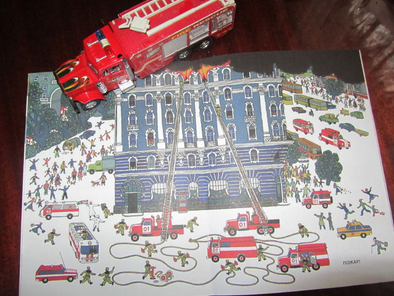 Самый любимый разворот с пожаром )) сын с этой пожарной машиной практически не расстаётся..