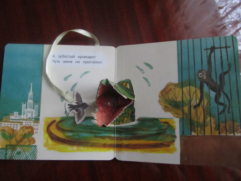 Уже столько восторгов написано по поводу этой книги, но мы с сыном добавим ещё! Красивая, на картоне (что немаловажно нам), с игровым моментом в виде летающего на ленточке воробья и раскрывающего пасть крокодила и гениального стихотворения Маршака - разве всё это может не сделать книгу хитом у каждого маленького ребёнка?!))