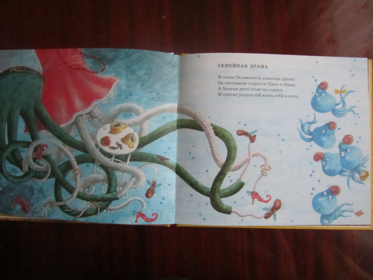 Читаю книгу в основном конечно сыну, но когда доходим до разворота с меню, дочка подскакивает к нам, и они вдвоём начинают хохотать и кривиться над этим странным меню))). По мне так глупость какая-то, но что ещё надо детям ))).