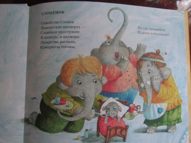 Этот сборник стихов - одна из немногочисленных книг со стихами, которые любила и да, что там говорить до сих пор любит дочка. Вот теперь и сыночек познакомился с этими озорными стихами. Они в большинстве случаев коротенькие, поэтому самое то, на наш двухлетний возраст )). Иллюстрации нравятся мне и дочке и сыночку видимо тоже ( я так вообще люблю творчество Антоненкова).