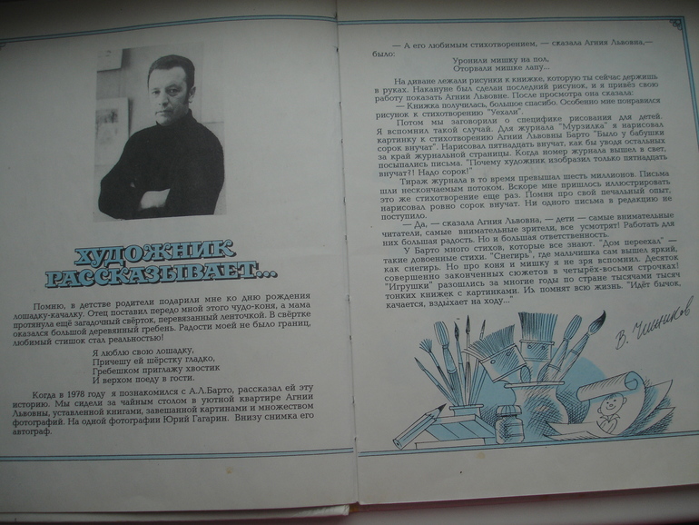 К юбилею художника издавалась целая серия книг с его иллюстрациями. Есть у меня ещё Цыферов и сам Чижиков (где девочка Наташа, кукла Маша, его коты). В самом начале следует статья от имени художника.